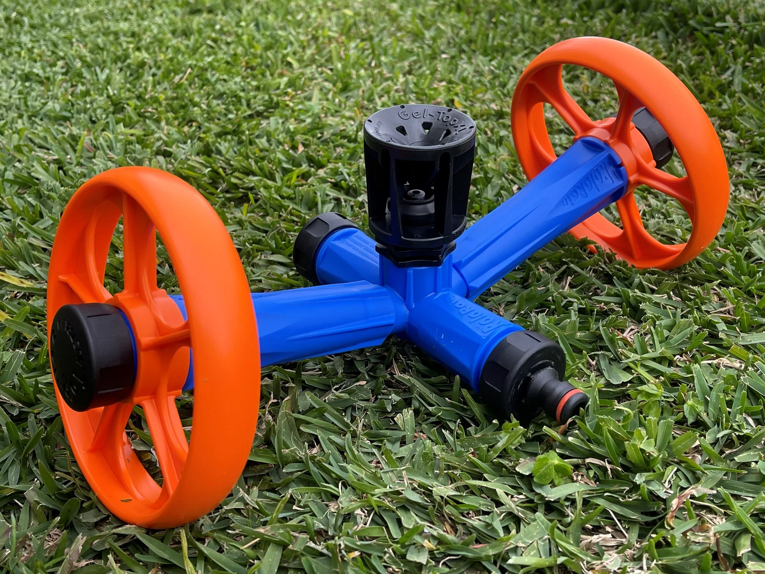 The spinning sprinkler top is made from a robust flexible material allowing it to bounce back from hits and knocks.